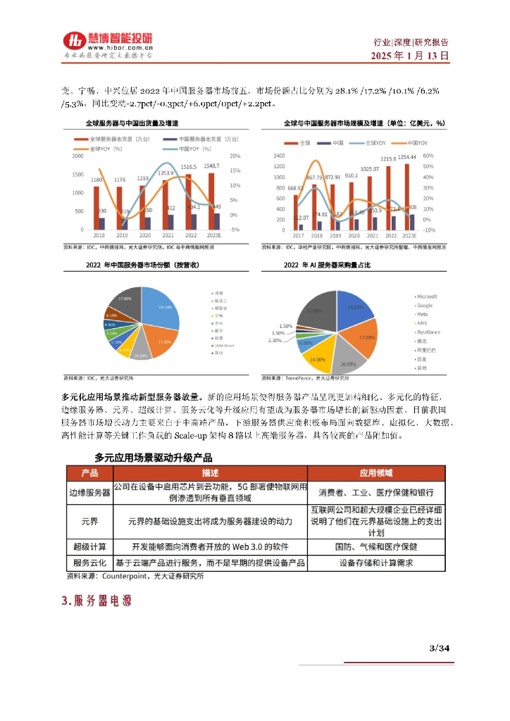 慧博智能投研:AI服务器电源行业深度:比较优势、竞争格局、市场空间及相关公司深度梳理.pdf
