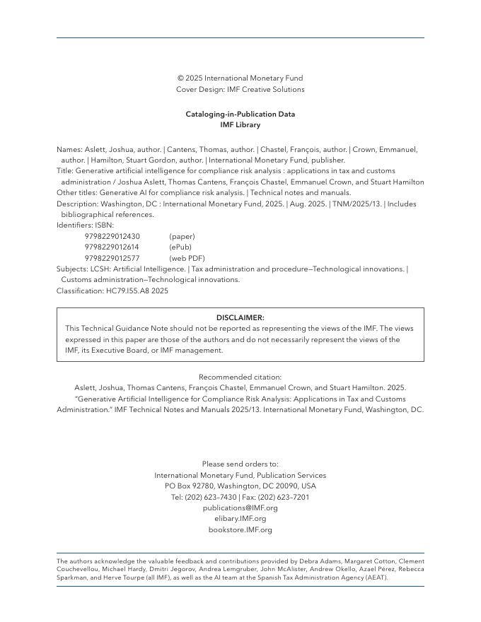 国际货币基金组织:2025年用于合规风险分析的生成性人工智能:在税务和海关管理中的应用报告(英文版).pdf