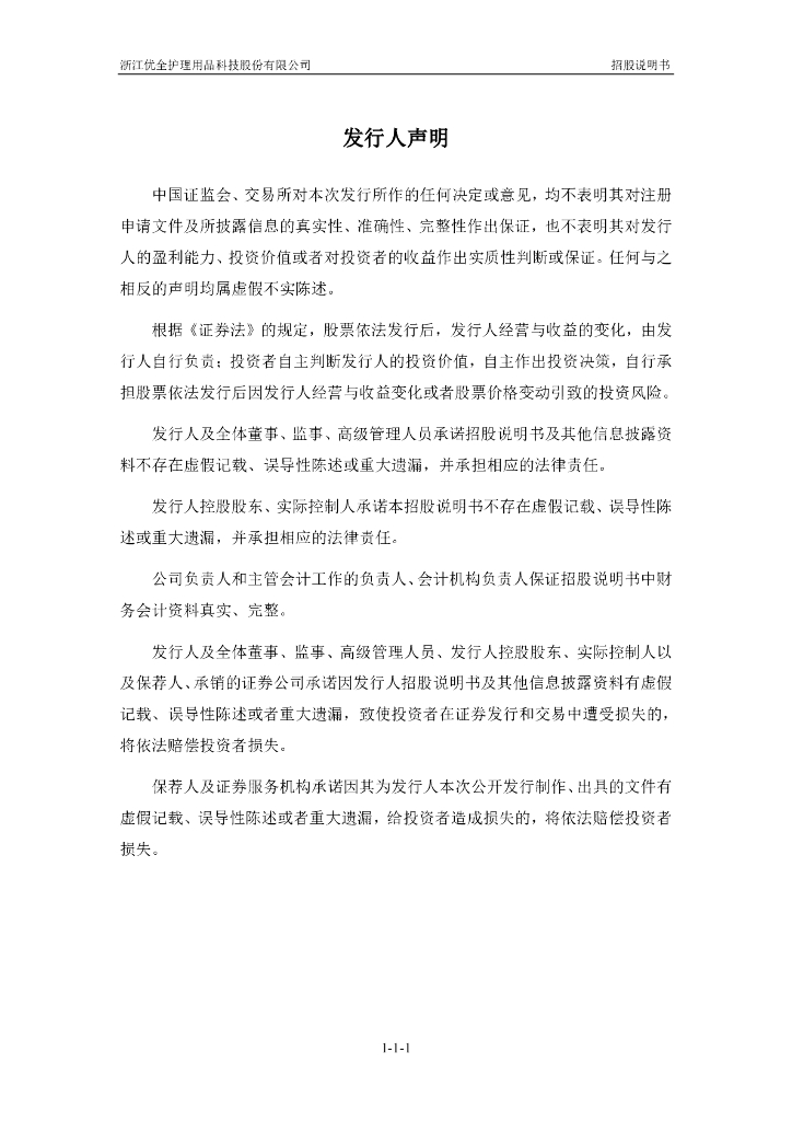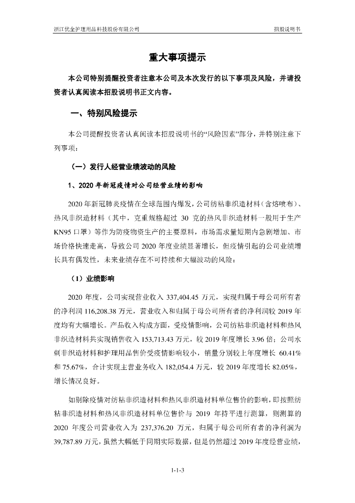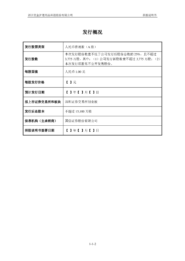 浙江优全护理用品科技股份有限公司深交所创业板IPO上市招股说明书.pdf