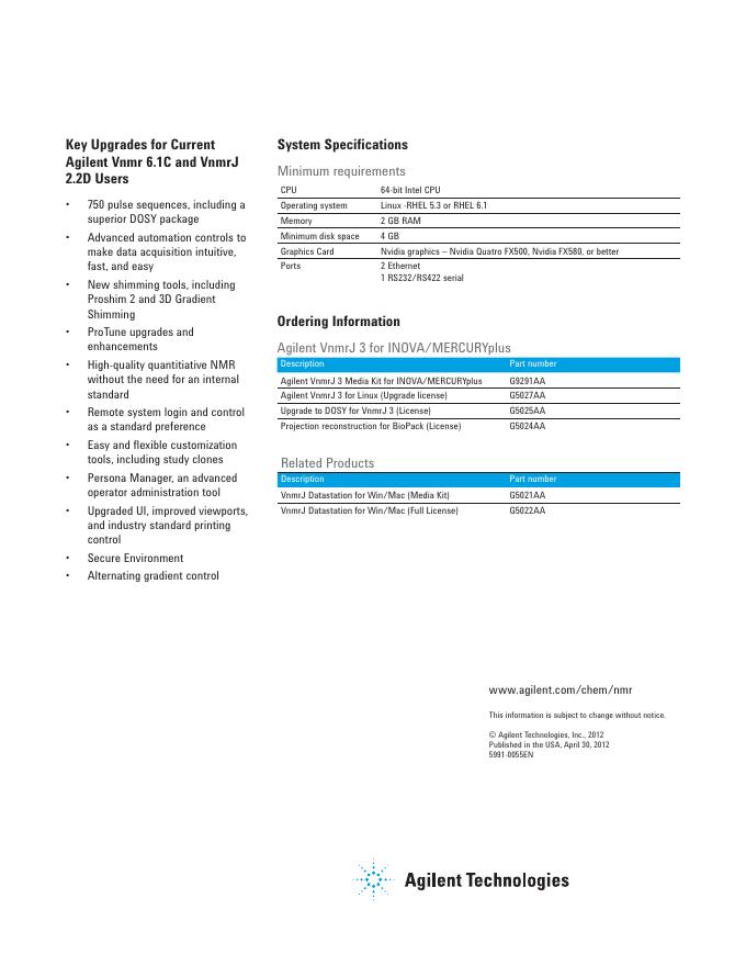 Agilent VnmrJ 3 For Inova and Mercury Vx/Plus Consoles 数据手册.pdf