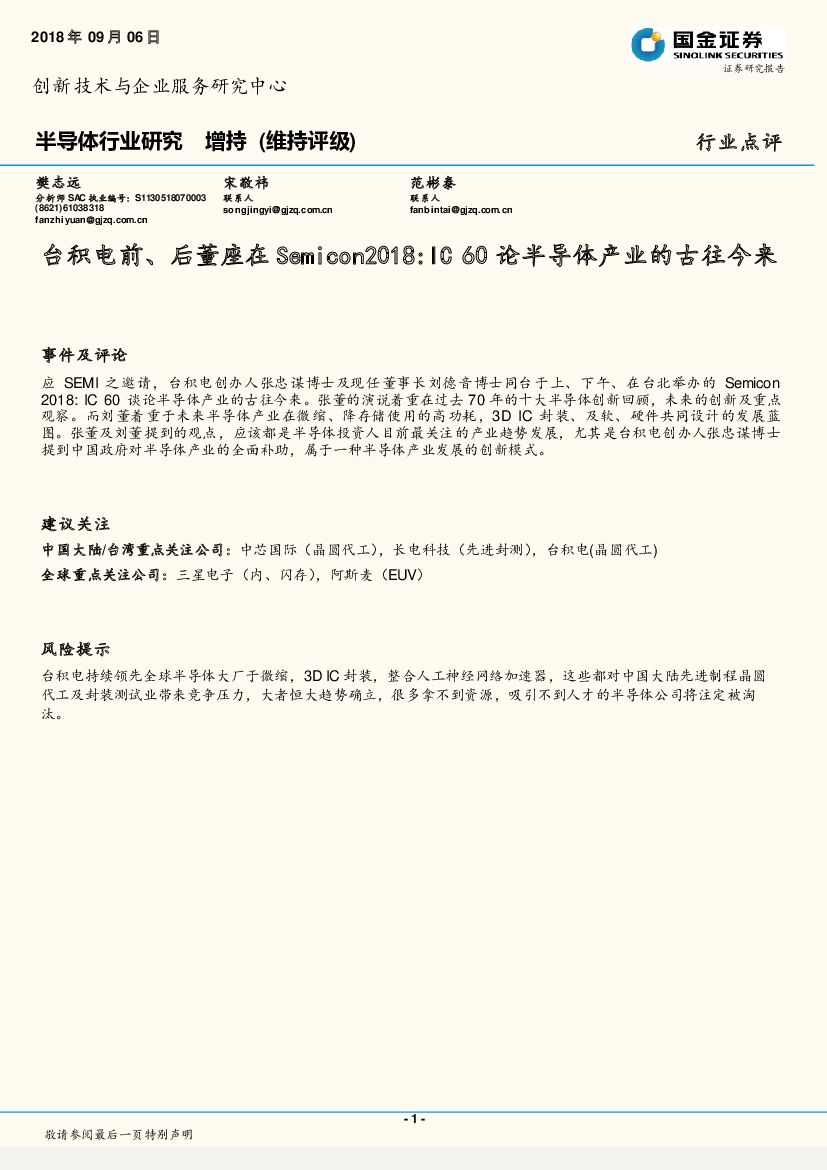 国金证券:半导体行业研究:台积电前、后董座在Semicon2018:IC60论半导体产业的古往今来.pdf