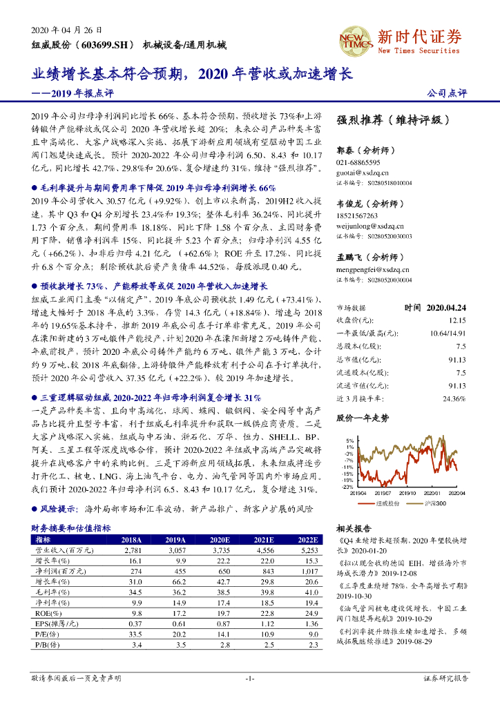 新时代证券:纽威股份(603699)-2019年报点评:业绩增长基本符合预期,2020年营收或加速增.pdf