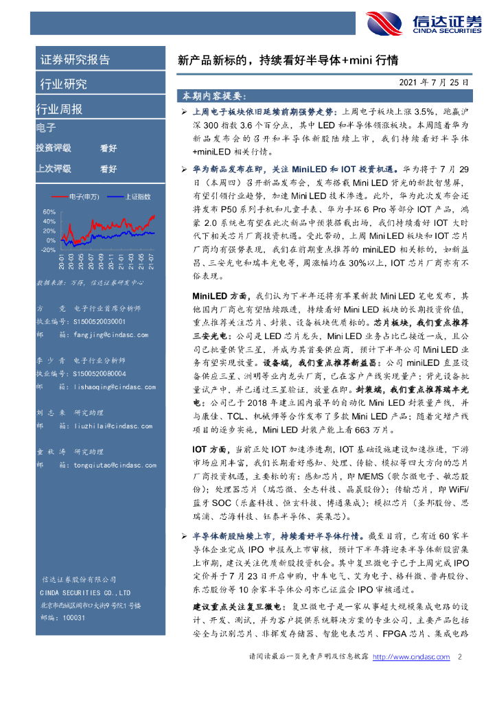 信达证券:电子行业周报:新产品新标的,持续看好半导体+mini行情.pdf