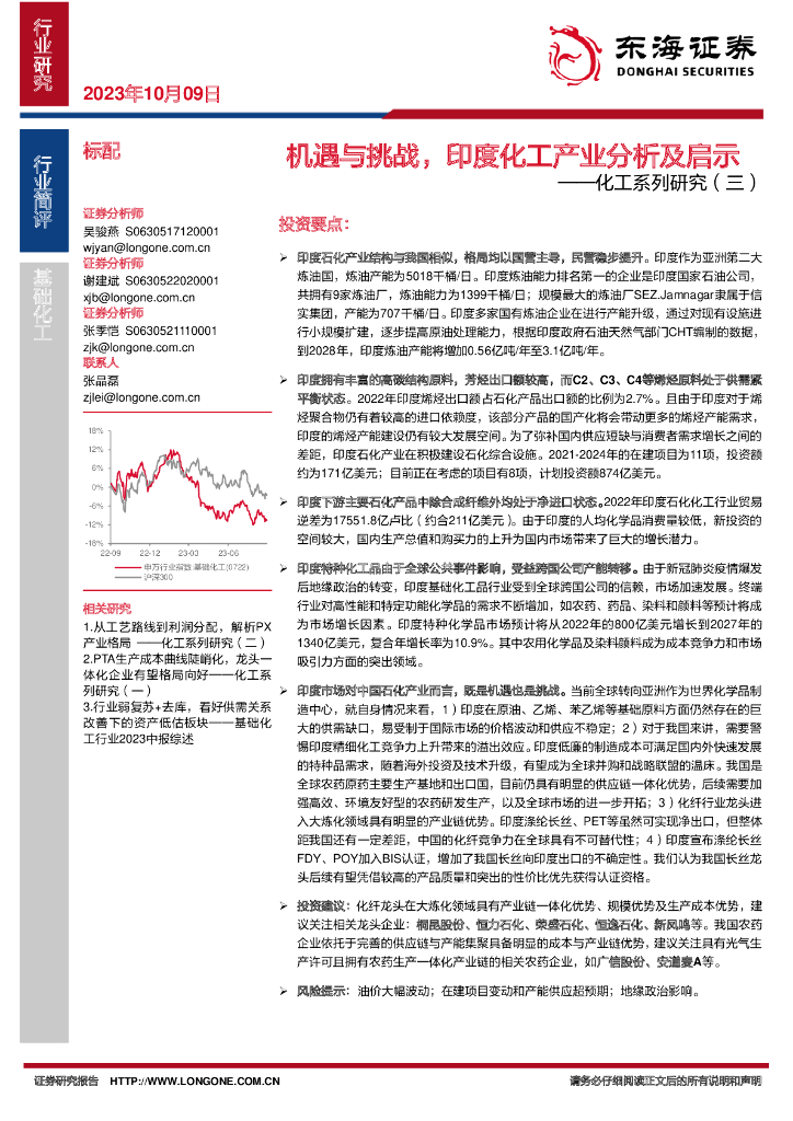 东海证券:化工系列研究(三):机遇与挑战,印度化工产业分析及启示.pdf