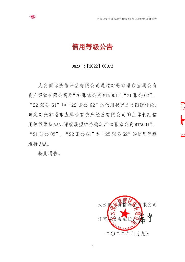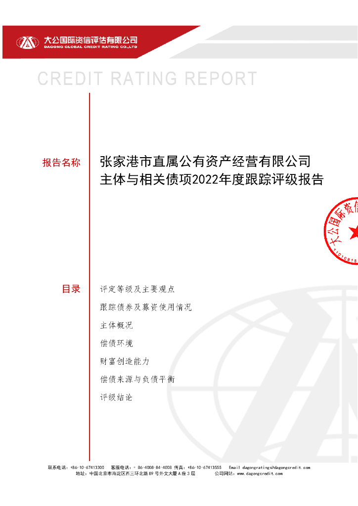 大公:张家港市直属公有资产经营有限公司主体与相关债项2022年度跟踪评级报告.pdf