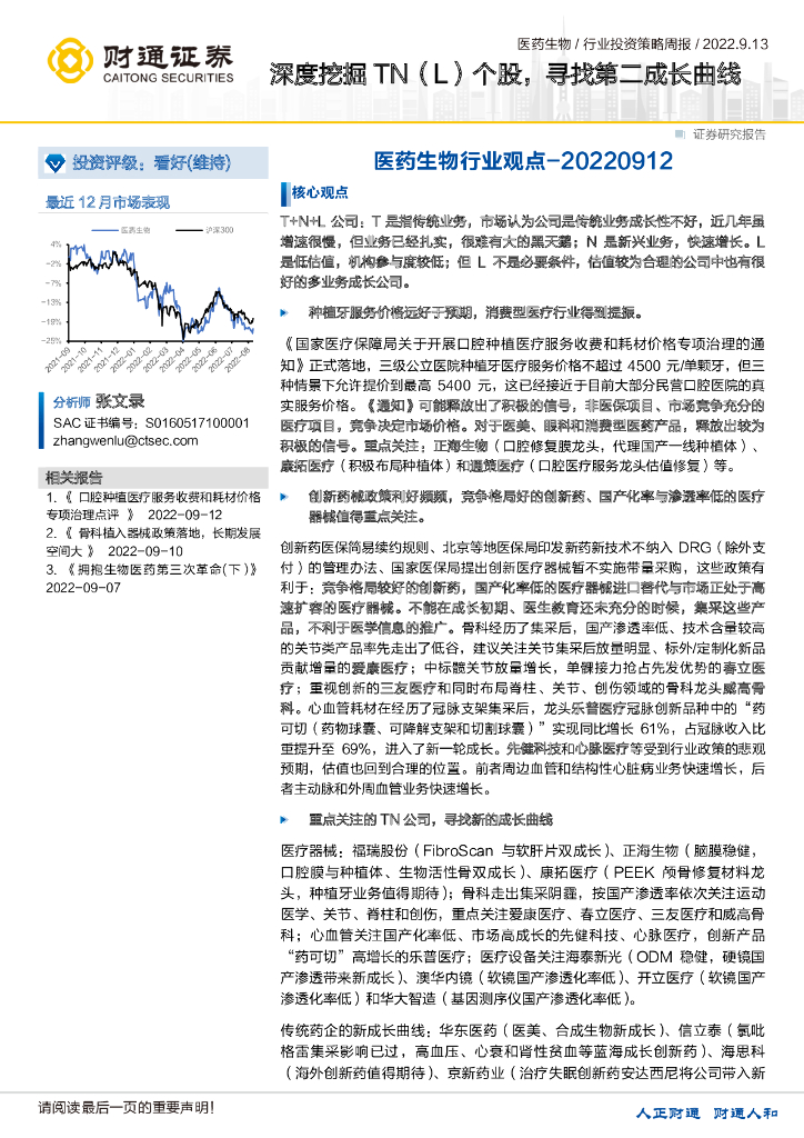 财通证券:医药生物行业观点:深度挖掘TN(L)个股,寻找第二成长曲线.pdf