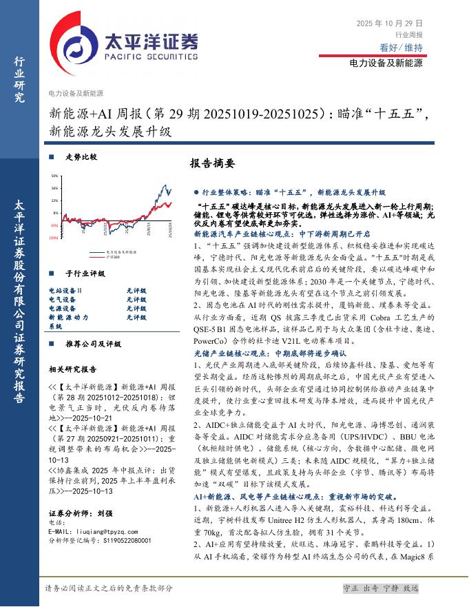 太平洋证券:电力设备及新能源行业:新能源+AI周报(第29期20251019-20251025),瞄准“十五五”,新能源龙头发展升级.pdf