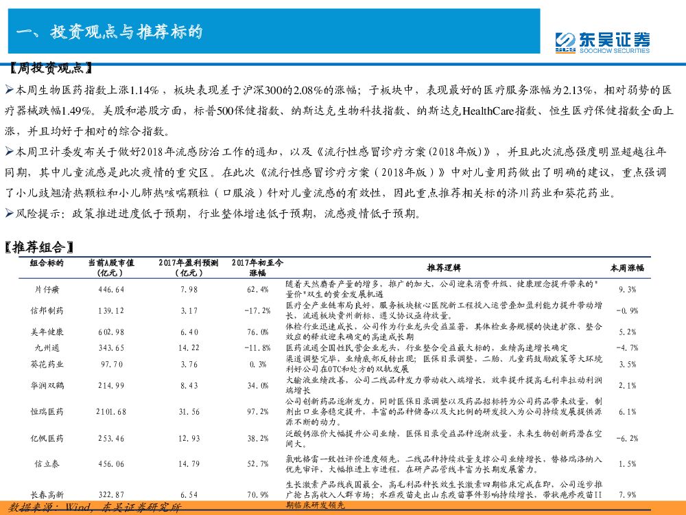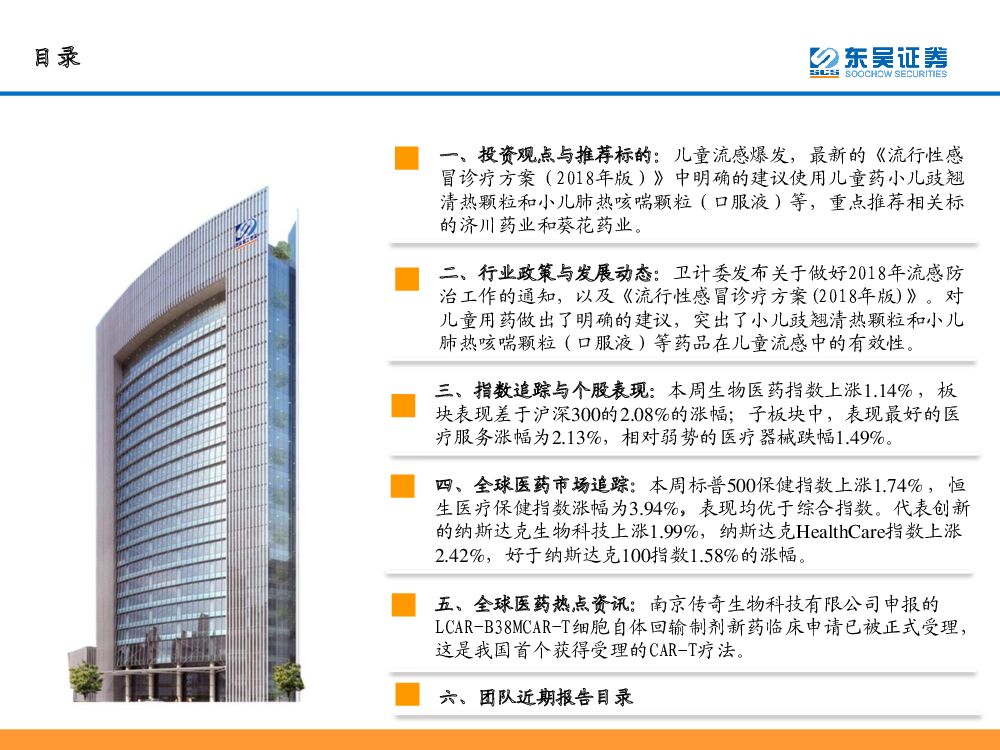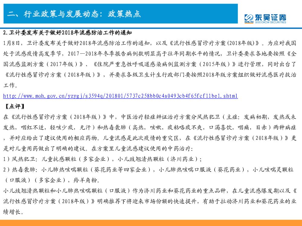 东吴证券:东吴医药行业周观点:儿童流感疫情加重,《流行性感冒诊疗方案(2018年版)》出台,显著利好葵花药业、济川药业等标的.pdf