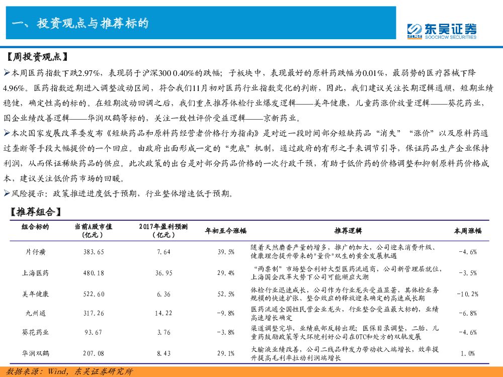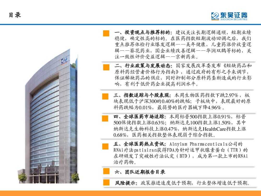 东吴证券:东吴医药行业周观点:医药指数波动期紧抓行业长期发展逻辑,重点推荐:体检—美年健康、儿童药—葵花药业,关注:一致性评价—京新药业.pdf