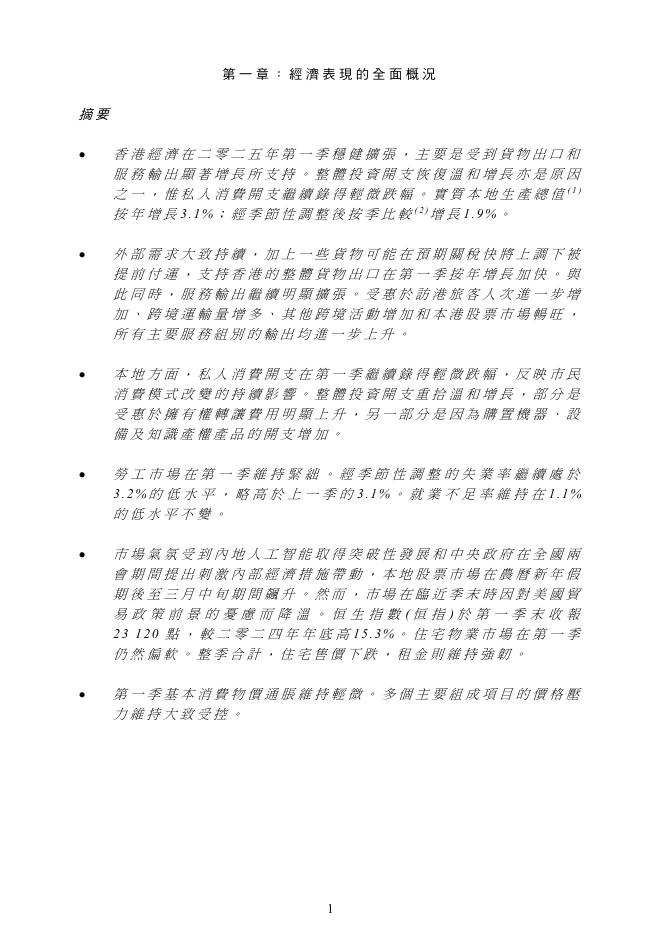 香港特别行政区政府:香港二零二五年第一季经济报告(繁体版).pdf