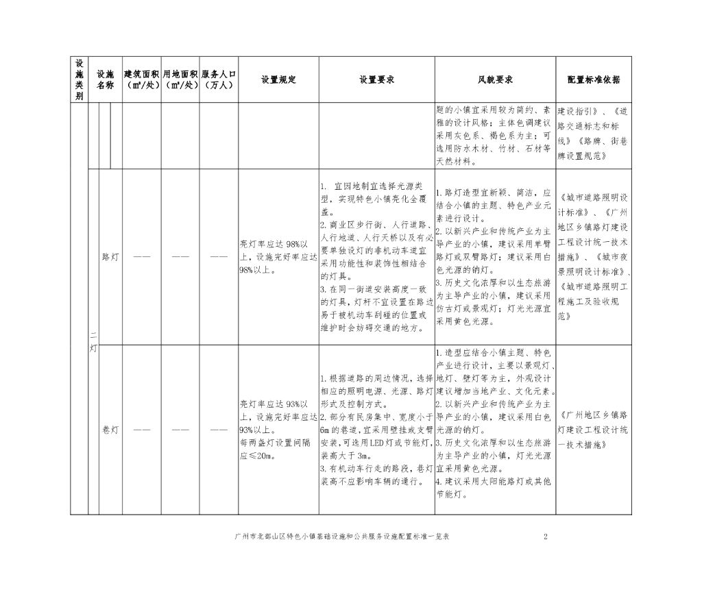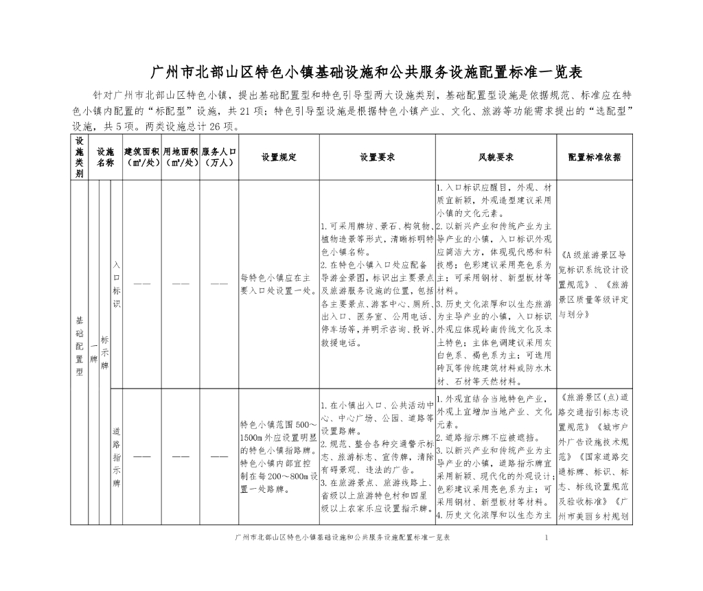 广州市北部山区特色小镇基础设施和公共服务设施配置标准建设指引 第四册 配置标准一览表和考核指标表.pdf