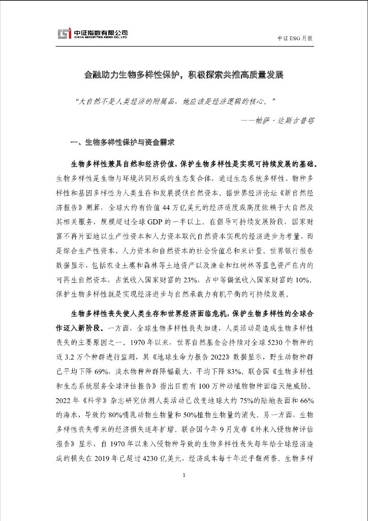 中证指数:金融助力生物多样性保护,积极探索共推高质量发展.pdf