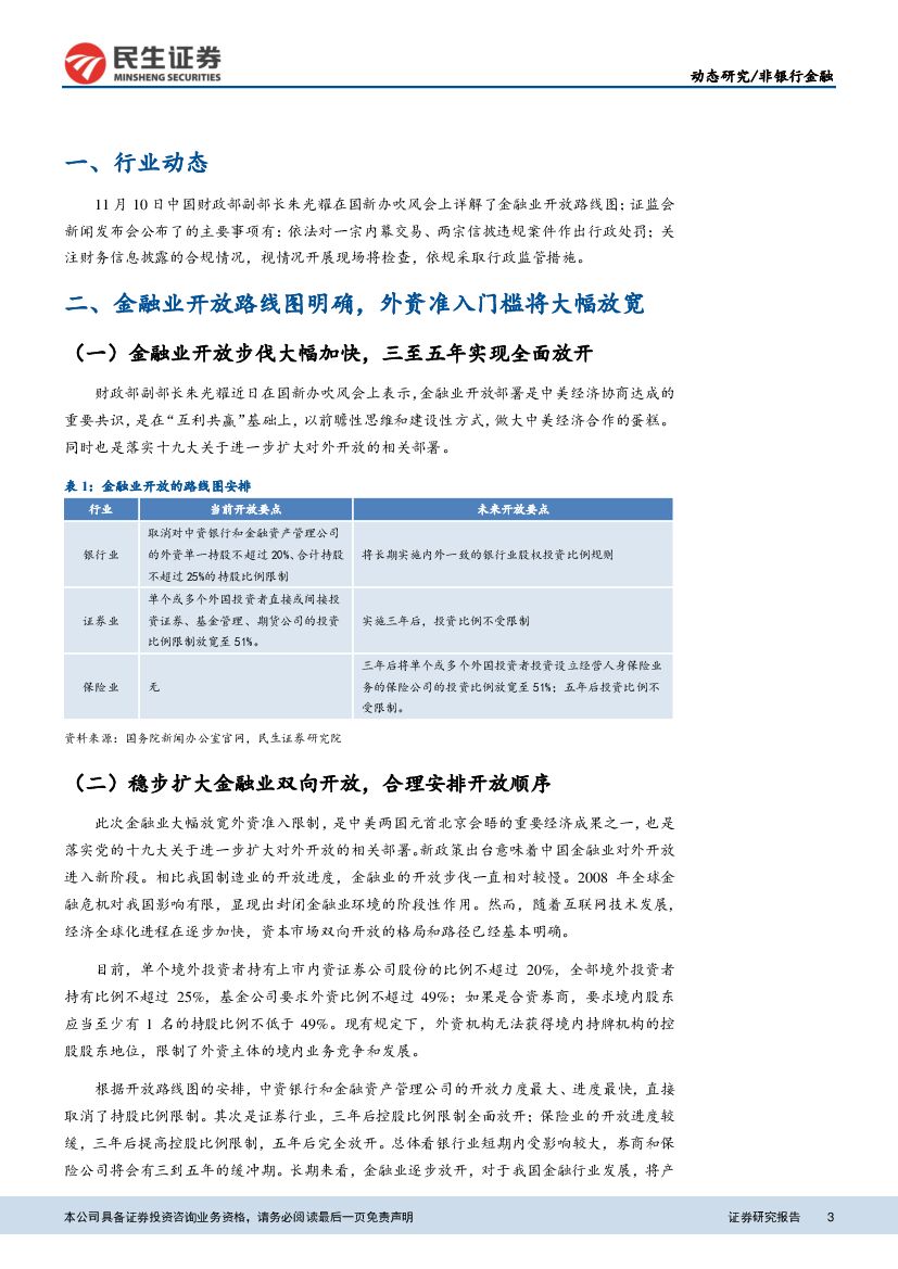 民生证券:非银行金融:每周行业规范与发展分析报告-金融业对外开放进度加快,证监会关注年末利润调节.pdf