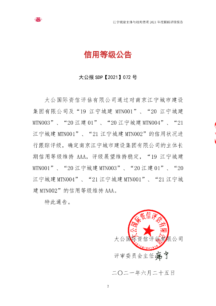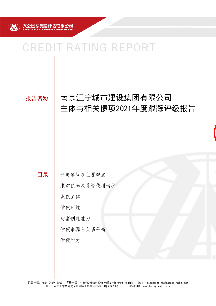 大公:南京江宁城市建设集团有限公司主体与相关债项2021年度跟踪评级报告.pdf