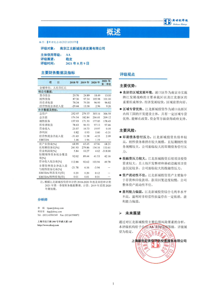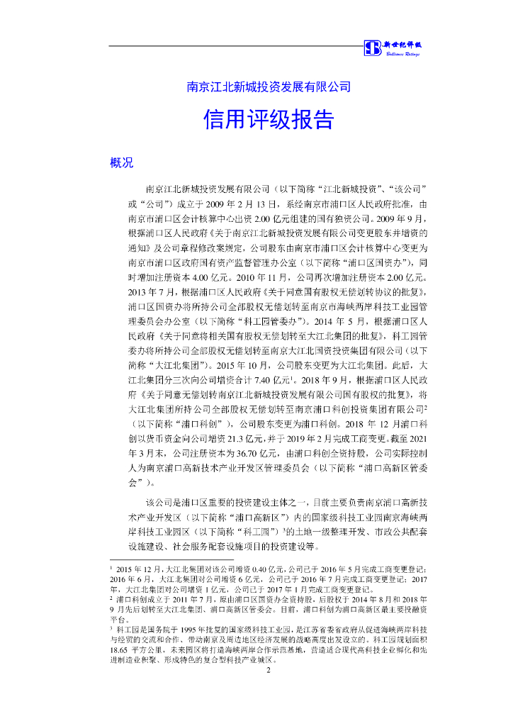 新世纪:南京江北新城投资发展有限公司信用评级报告.pdf