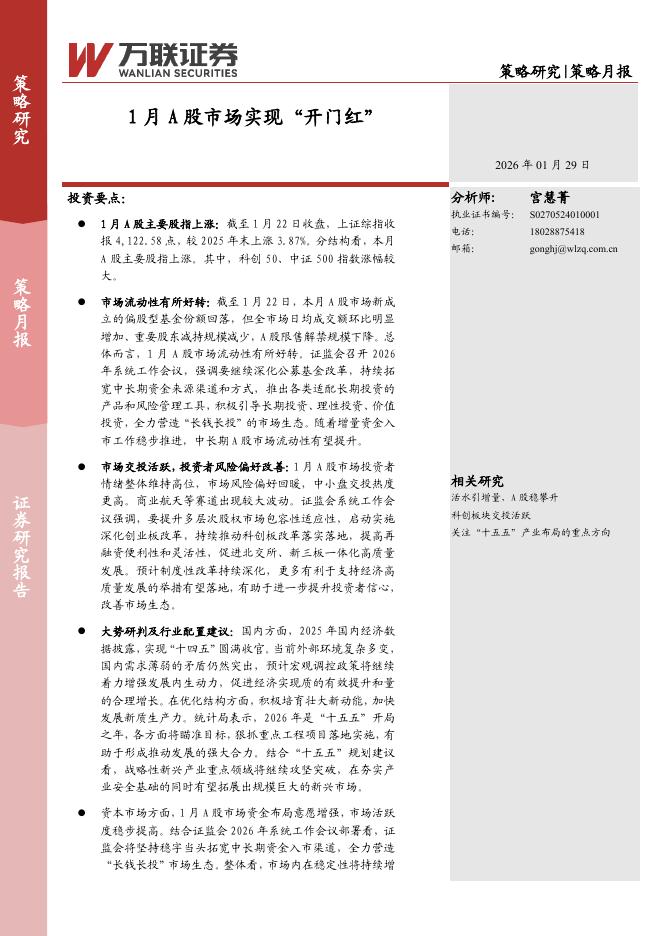 万联证券:策略月报:1月A股市场实现“开门红”-260129.pdf