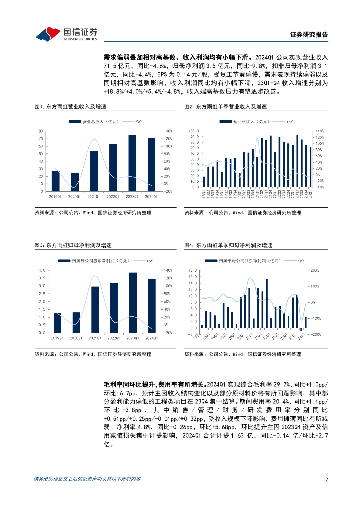 国信证券:东方雨虹(002271)-2024年一季报点评:收入利润略有承压,毛利率同环比提升.pdf