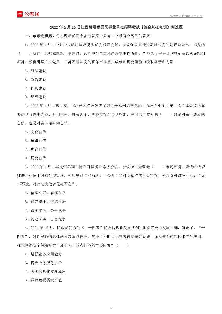 2022年5月15日江西赣州章贡区事业单位招聘考试《综合基础知识》精选题.pdf