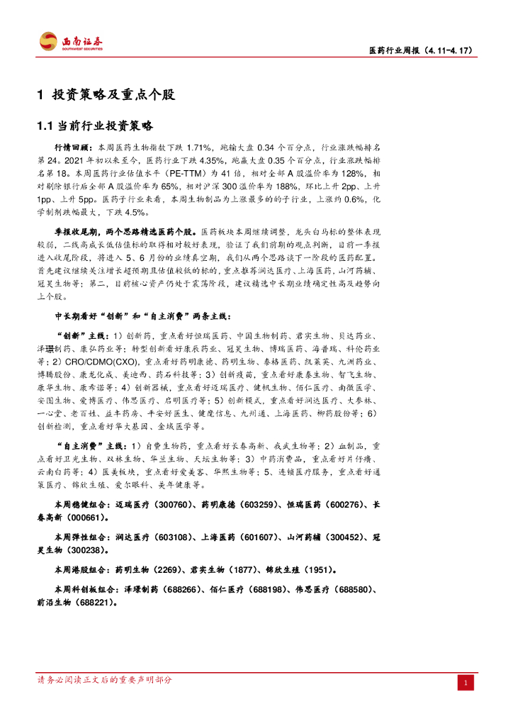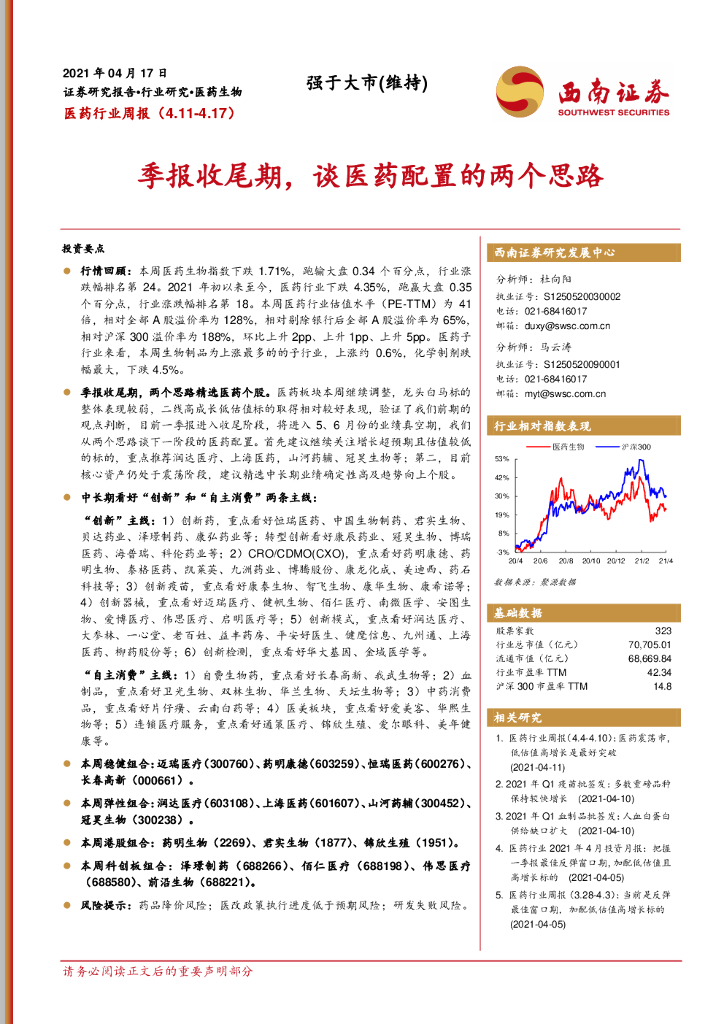 西南证券:医药行业周报:季报收尾期,谈医药配置的两个思路.pdf