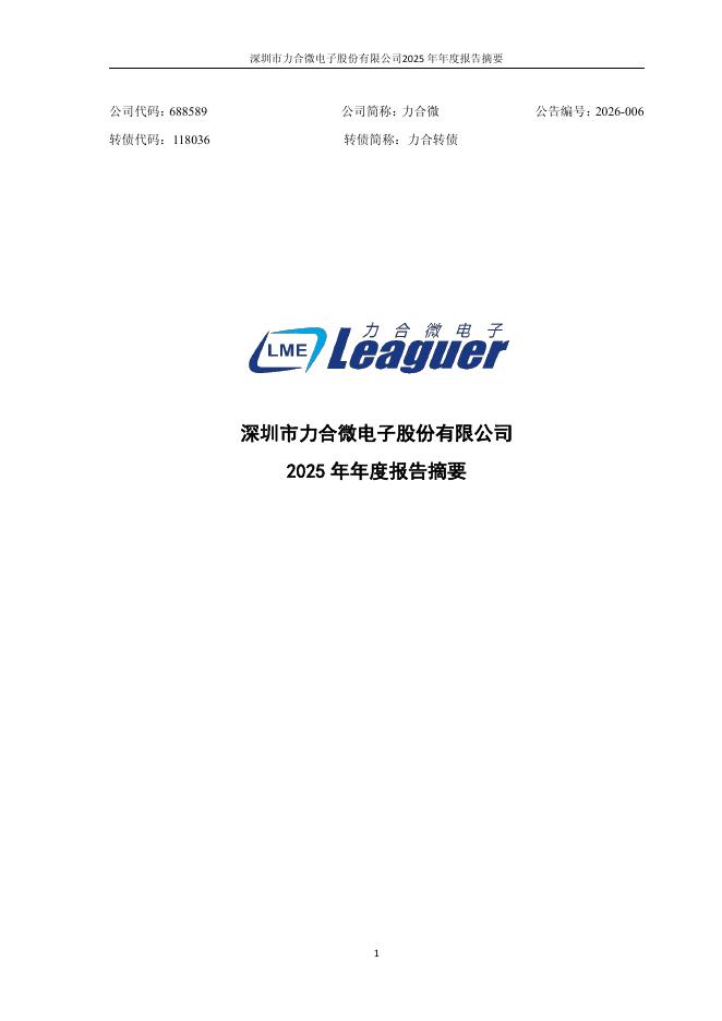 118036-力合微:2025年年度报告摘要.pdf