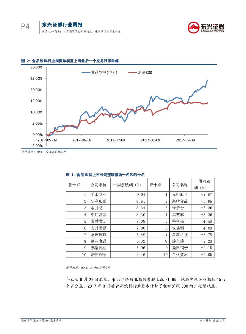 东兴证券:食品饮料行业2017年第41周周报:双节期间茅台价格稳定,建议关注三季报行情.pdf