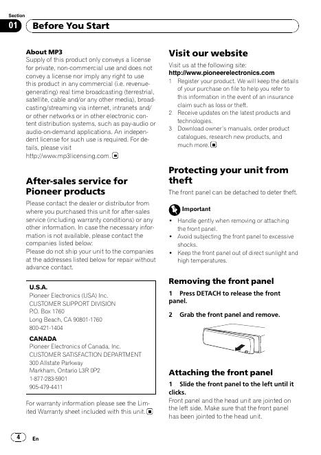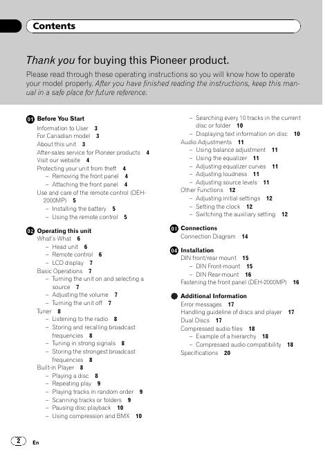 Pioneer DEH-2000MP和DEH-10MP CD接收器使用手册.pdf