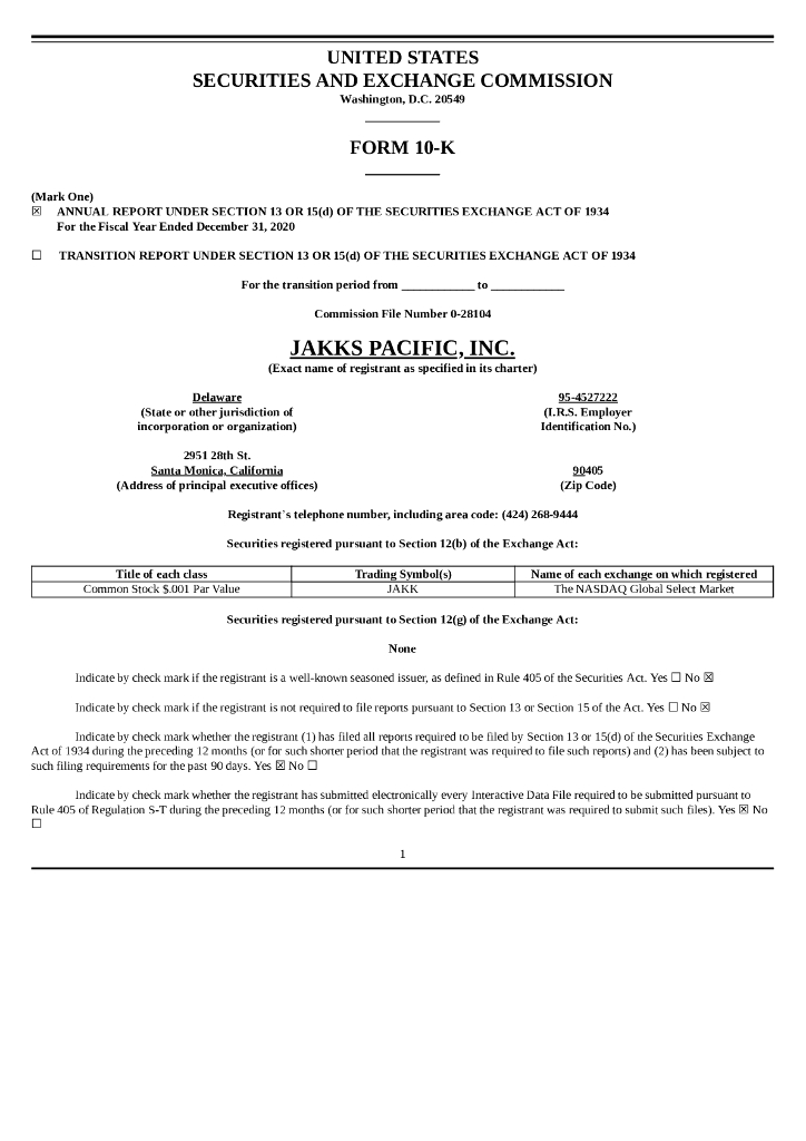 JAKKS Pacific Inc.(JAKK)2020财年年度报告(英文版).pdf