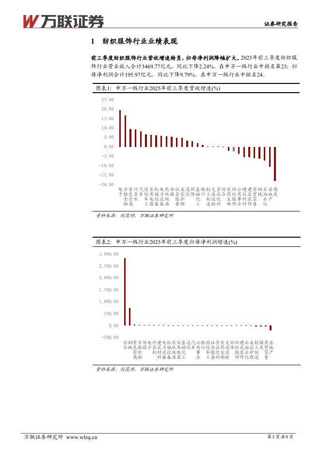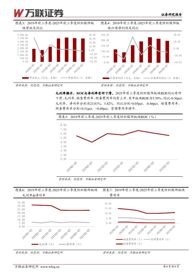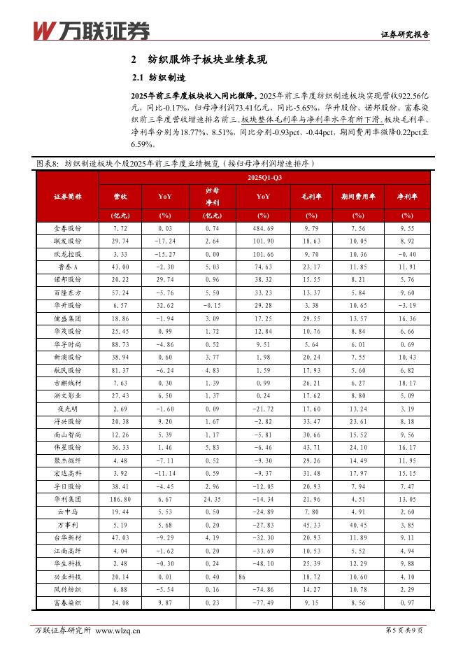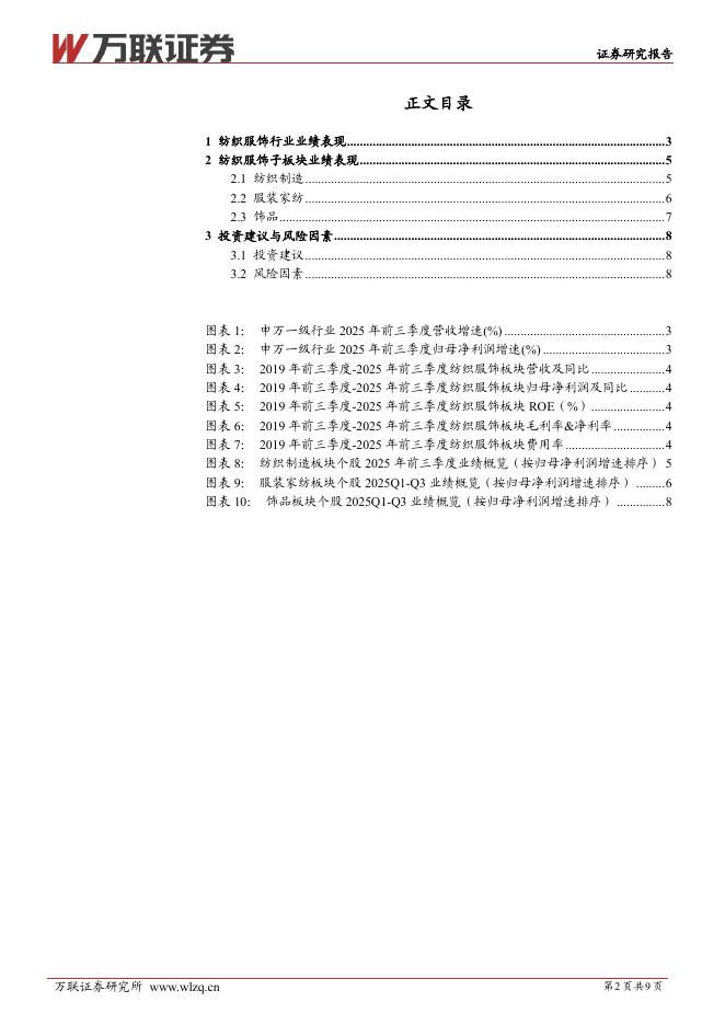 万联证券:纺织服饰行业2025年三季报综述:纺织制造板块收入表现稳健,服装家纺、饰品业绩仍待恢复.pdf