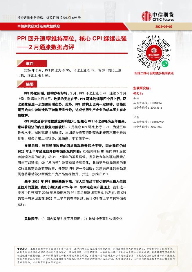 中信期货:2月通胀数据点评:PPI回升速率维持高位,核心CPI继续走强-260310.pdf