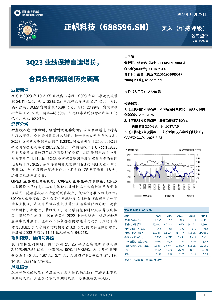 国金证券:正帆科技(688596)-3Q23业绩保持高速增长,合同负债规模创历史新高.pdf