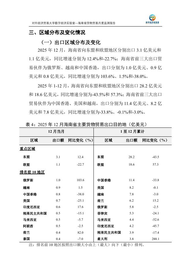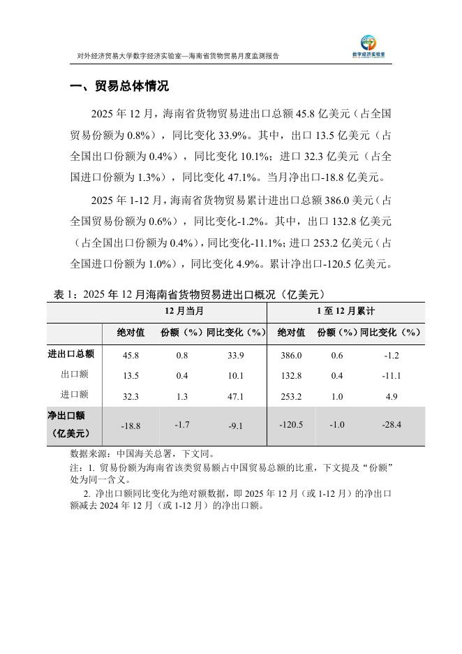 对外经济贸易大学:海南省货物贸易月度监测报告(2025年1-12月).pdf
