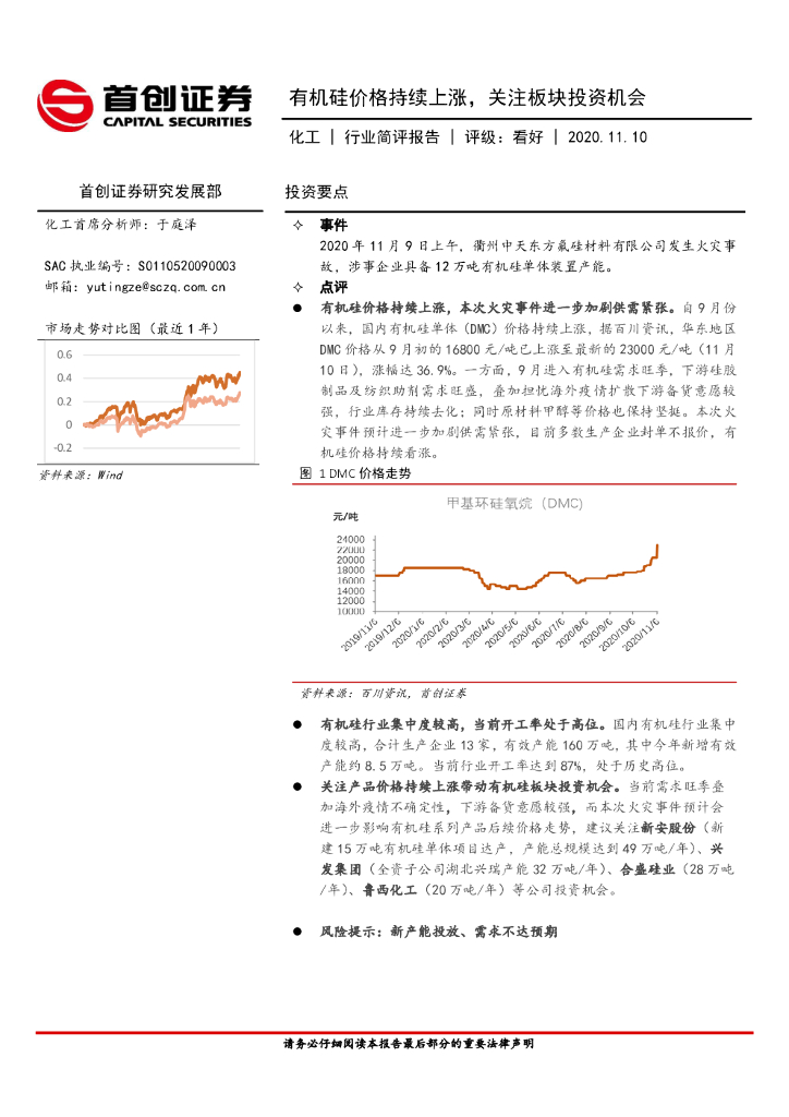 首创证券:化工|行业简评报告:有机硅价格持续上涨,关注板块投资机会.pdf