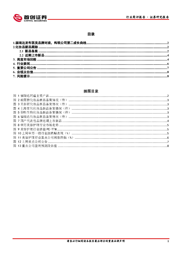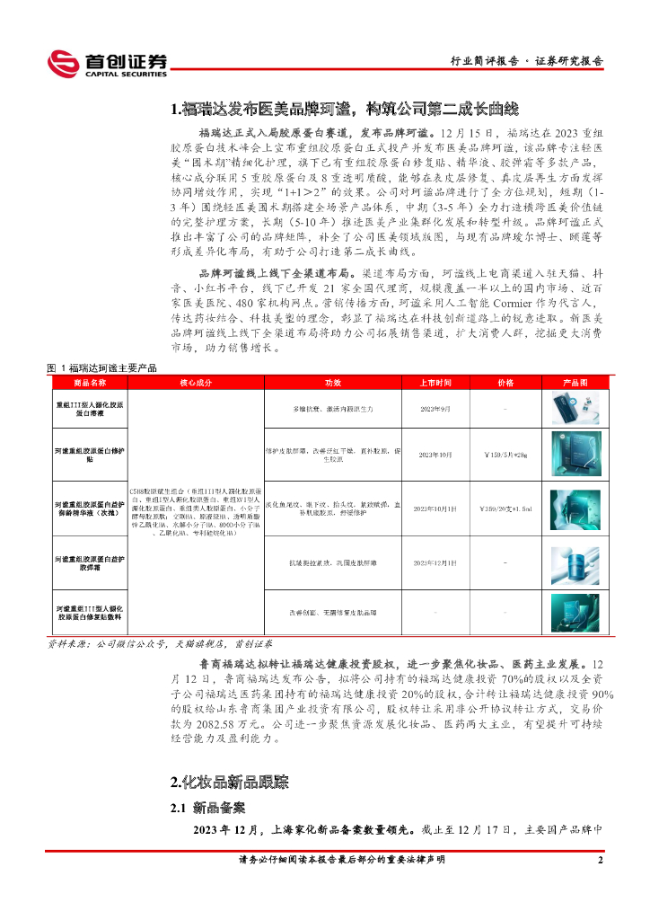 首创证券:美容护理行业简评报告:美妆:福瑞达发布医美品牌珂谧,构筑公司第二成长曲线.pdf