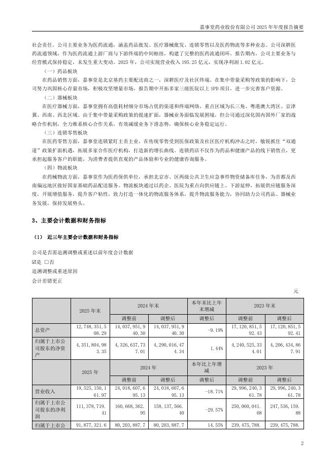 002462-嘉事堂:2025年年度报告摘要.pdf