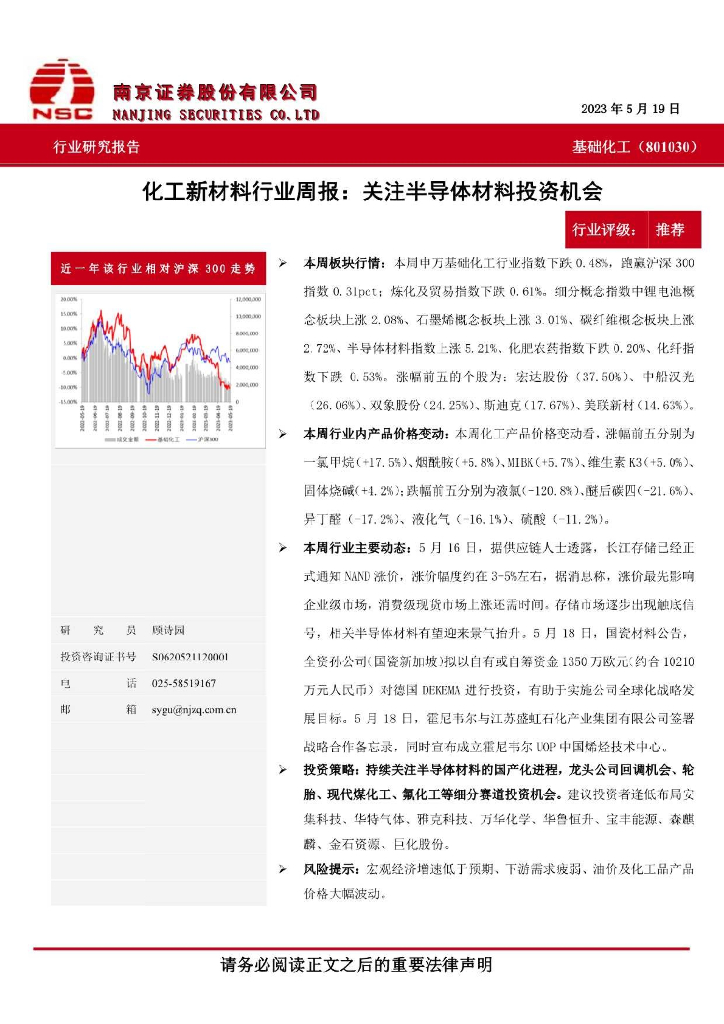 南京证券:化工新材料行业周报:关注半导体材料投资机会.pdf
