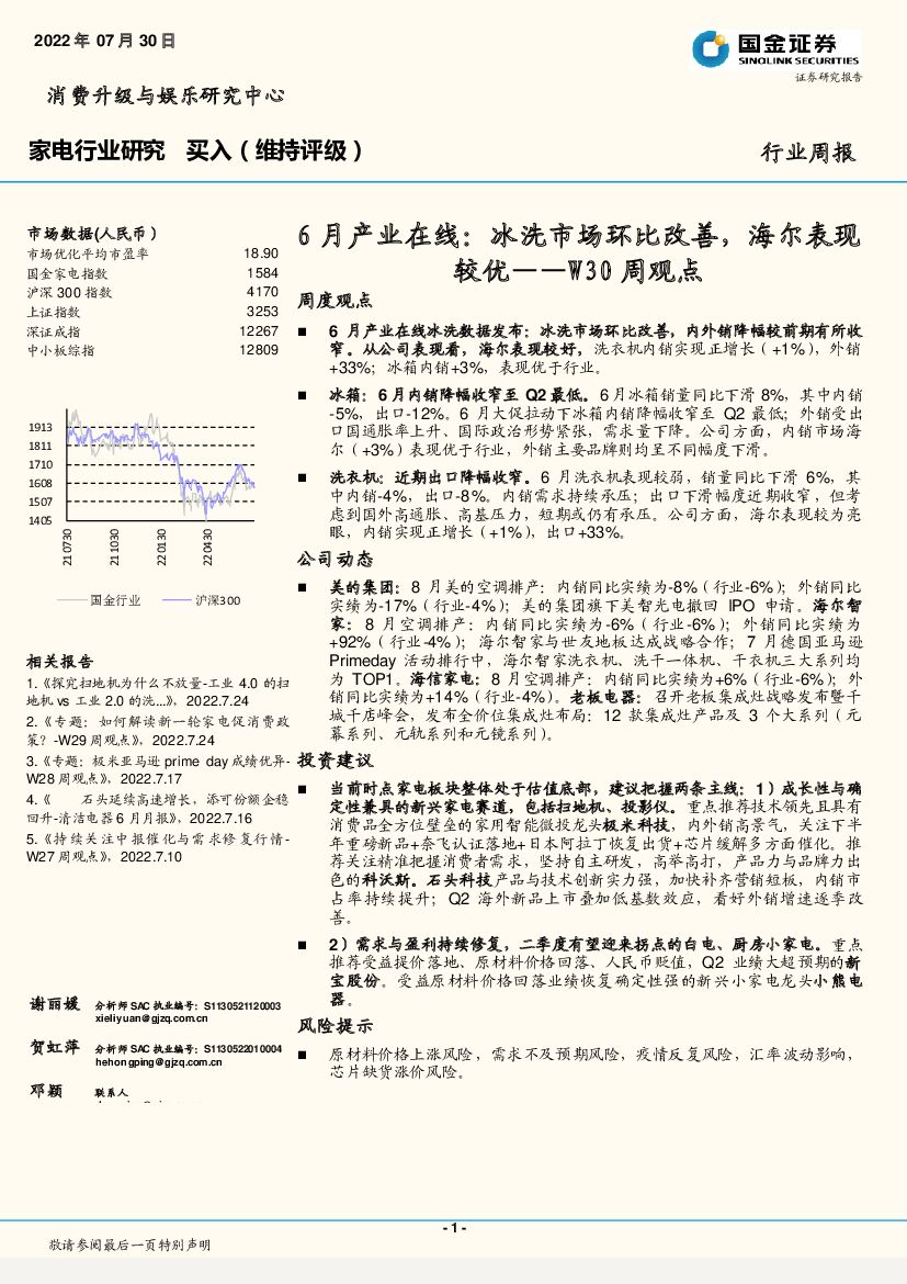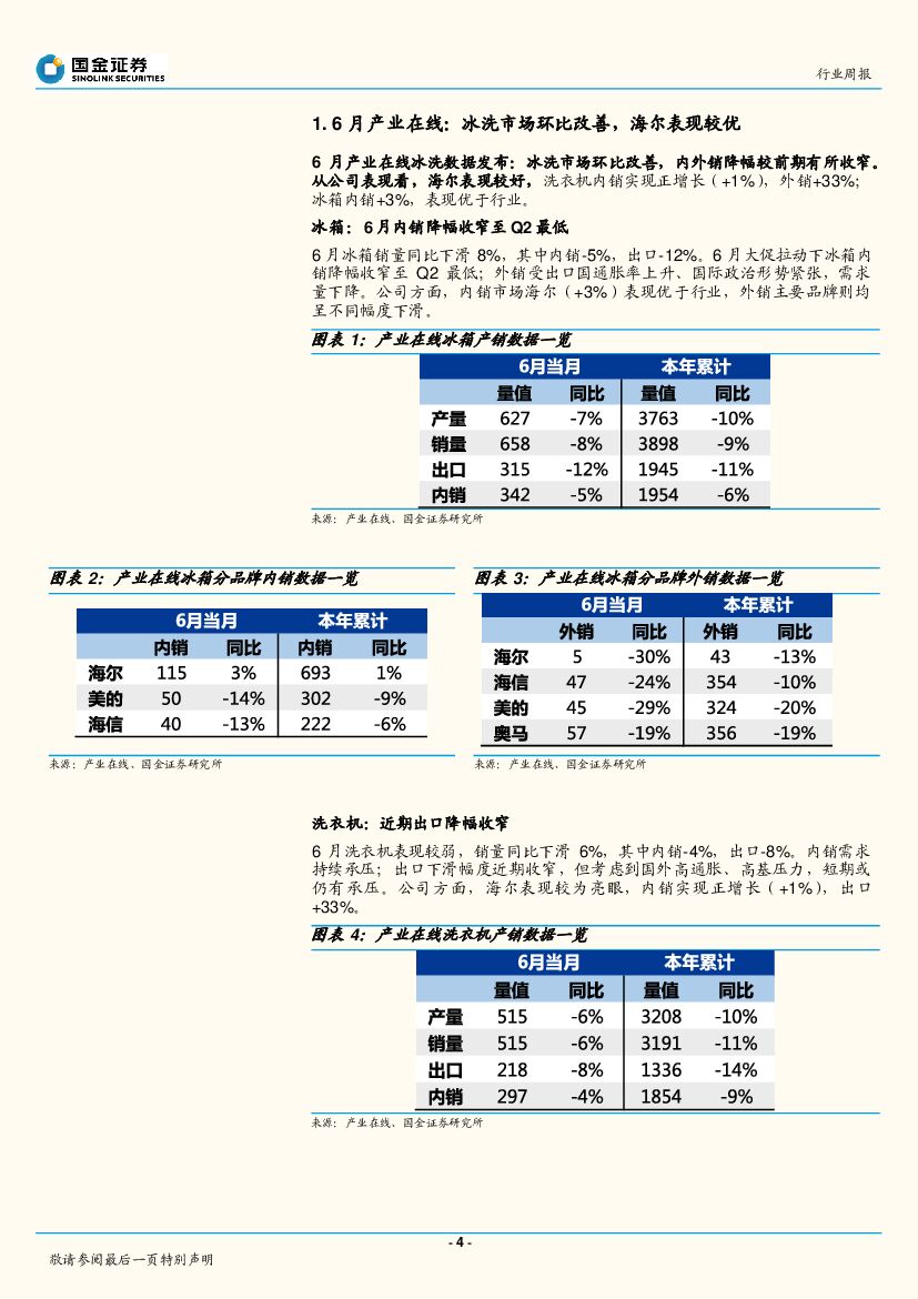 国金证券:家电行业研究6月产业在线:冰洗市场环比改善,海尔表现较优——W30周观点.pdf