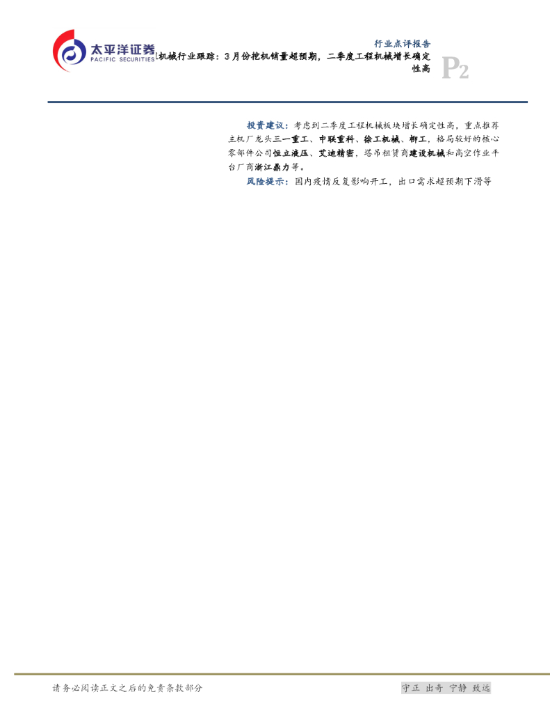 太平洋证券:工程机械行业跟踪:3月份挖机销量超预期,二季度工程机械增长确定性高.pdf