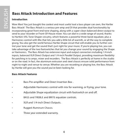 Hartke BASS ATTACK PEDAL 用户手册.pdf