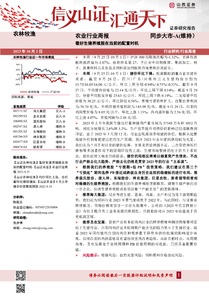 山西证券:农业行业周报:看好生猪养殖股在当前的配置时机.pdf