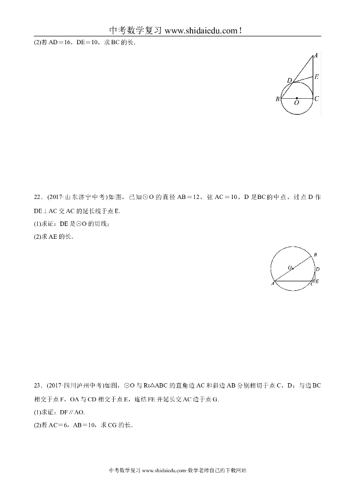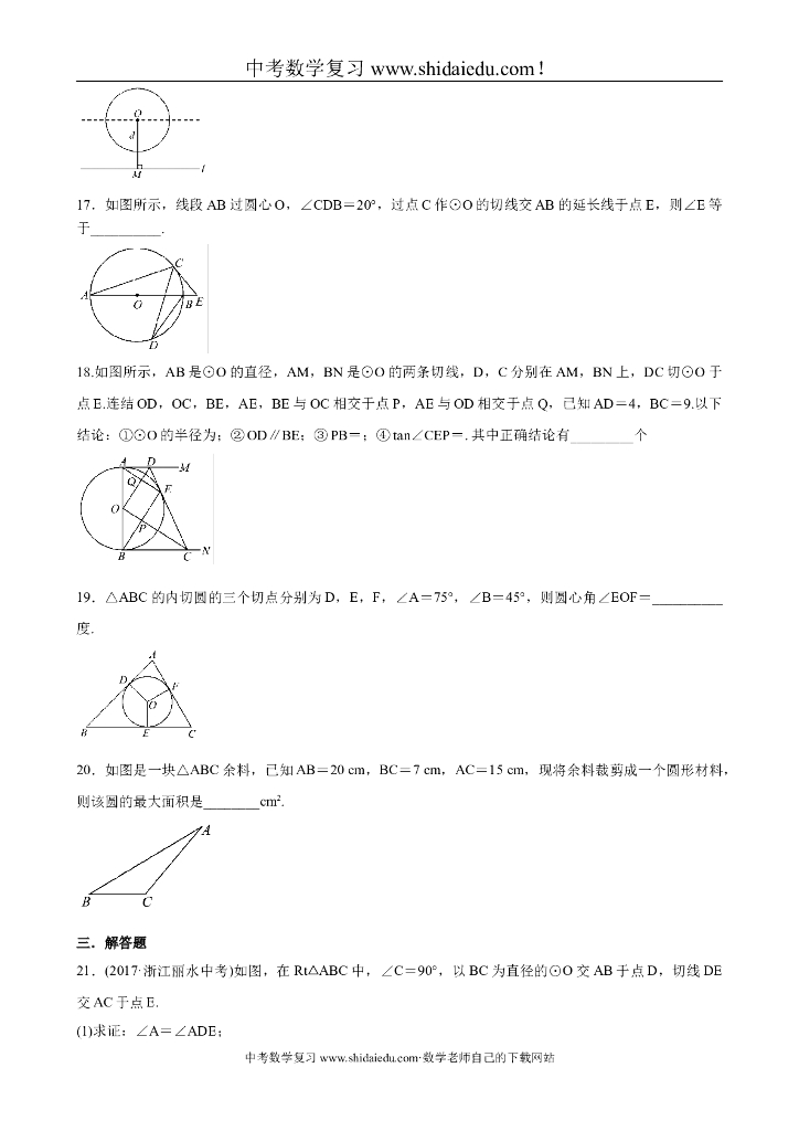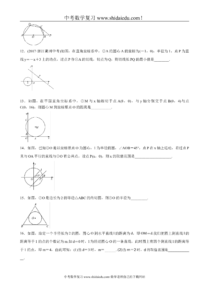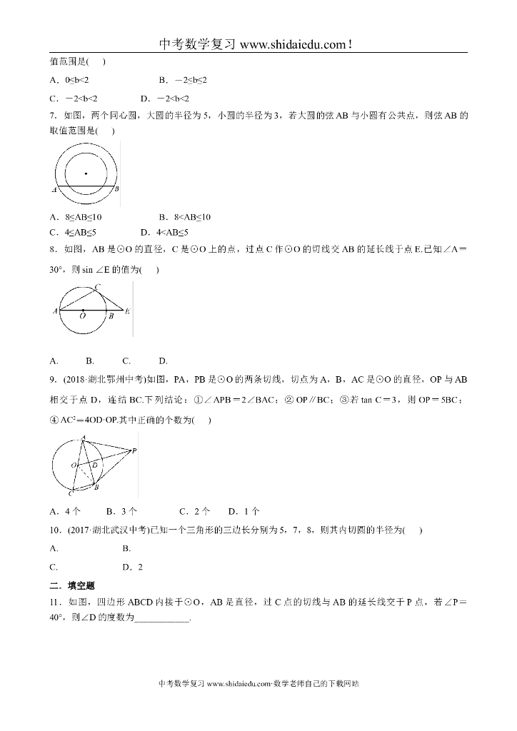 浙教版数学中考复习--直线与圆的位置关系--综合测试.doc