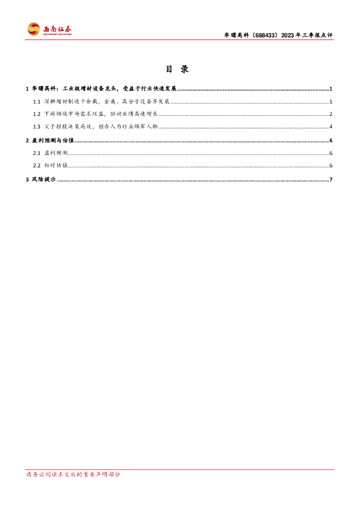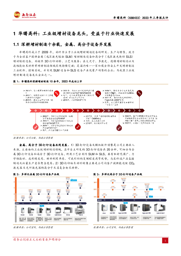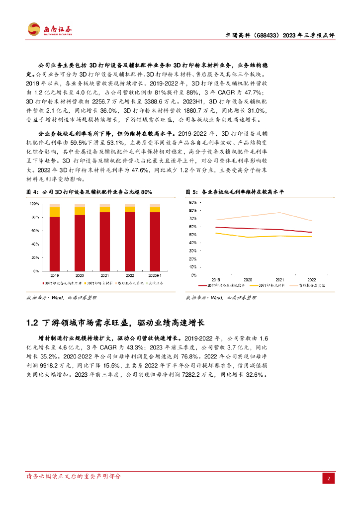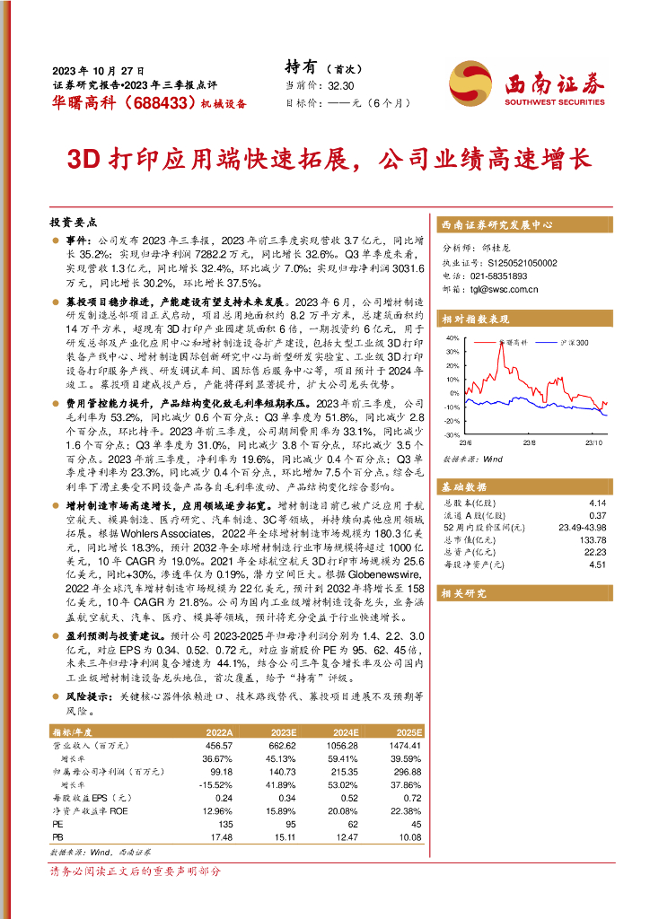 西南证券:华曙高科(688433)-2023年三季报点评:3D打印应用端快速拓展,公司业绩高速增长.pdf
