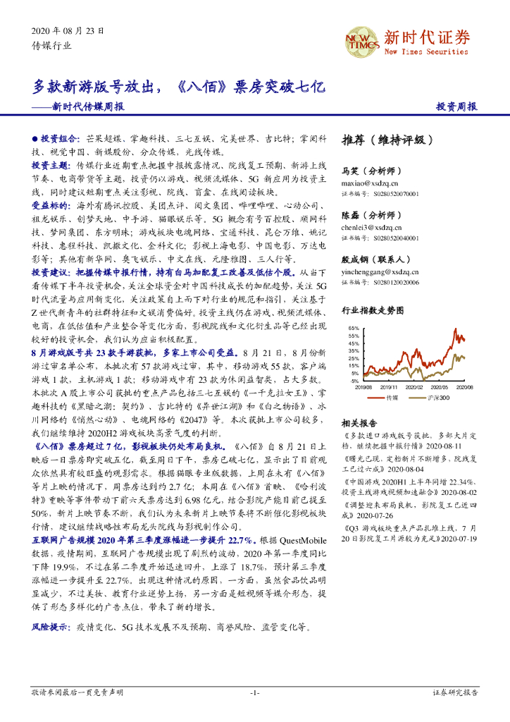 新时代证券:新时代传媒周报:多款新游版号放出,《八佰》票房突破七亿.pdf