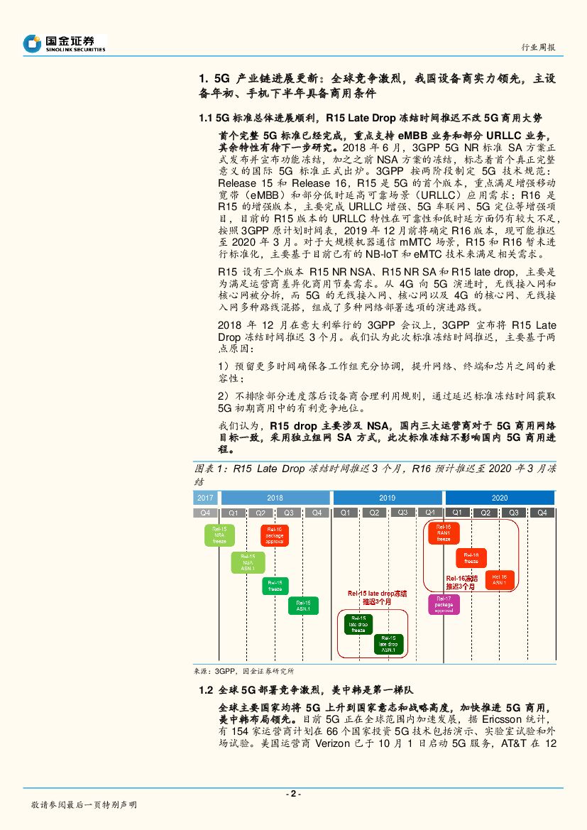 国金证券:通信行业研究周报:5G产业链进展更新:华为亮剑,商用提速.pdf