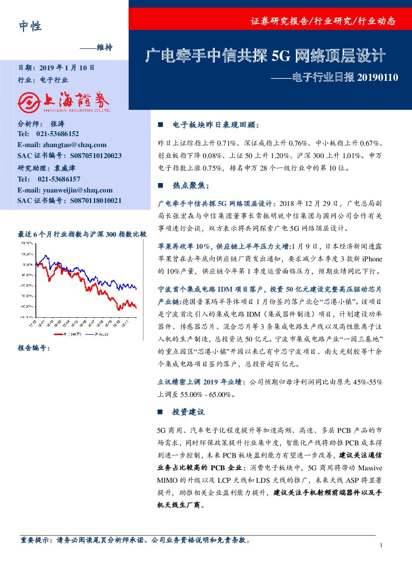 上海证券:电子行业日报:广电牵手中信共探 5G网络顶层设计.pdf