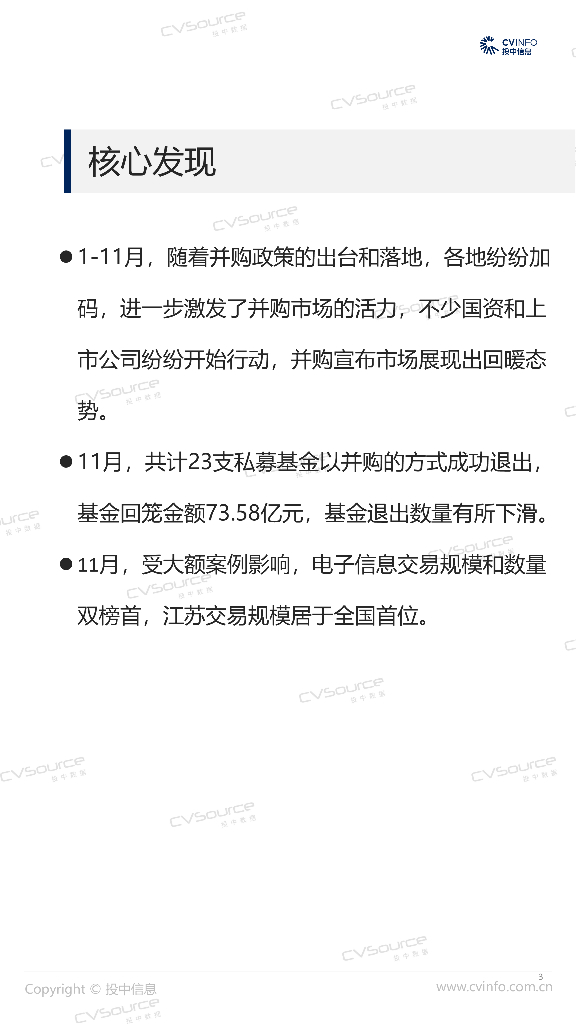 投中信息:投中统计:1-11月并购宣布市场整体活跃度上升 基金回笼资金翻倍.pdf