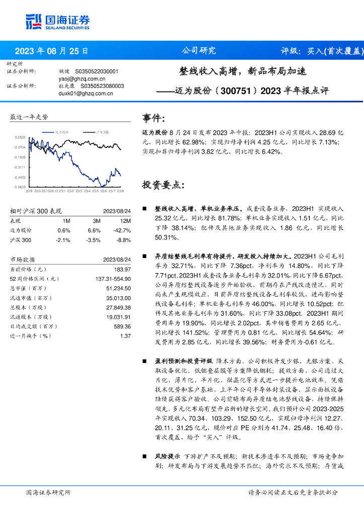 国海证券:迈为股份(300751)-2023半年报点评:整线收入高增,新品布局加速.pdf