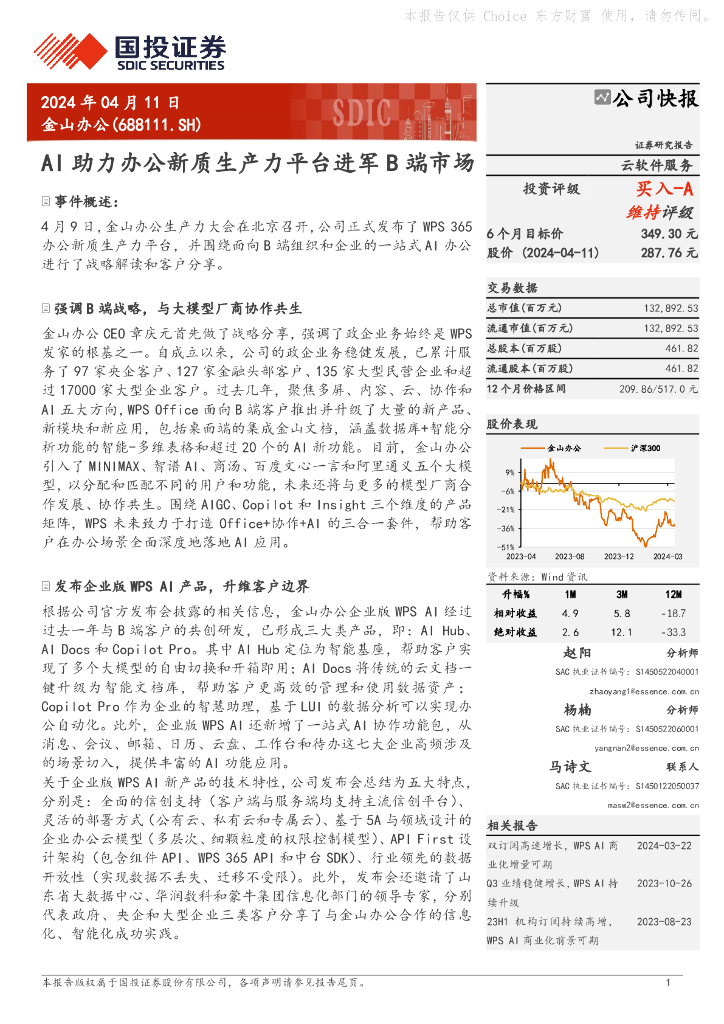 国投证券:金山办公(688111)-AI助力办公新质生产力平台进军B端市场.pdf