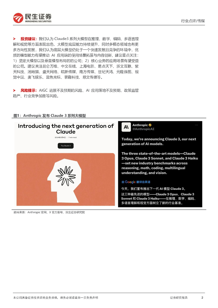 民生证券:传媒行业事件点评:Anthropic发布Claude3,关注大模型底层进展.pdf