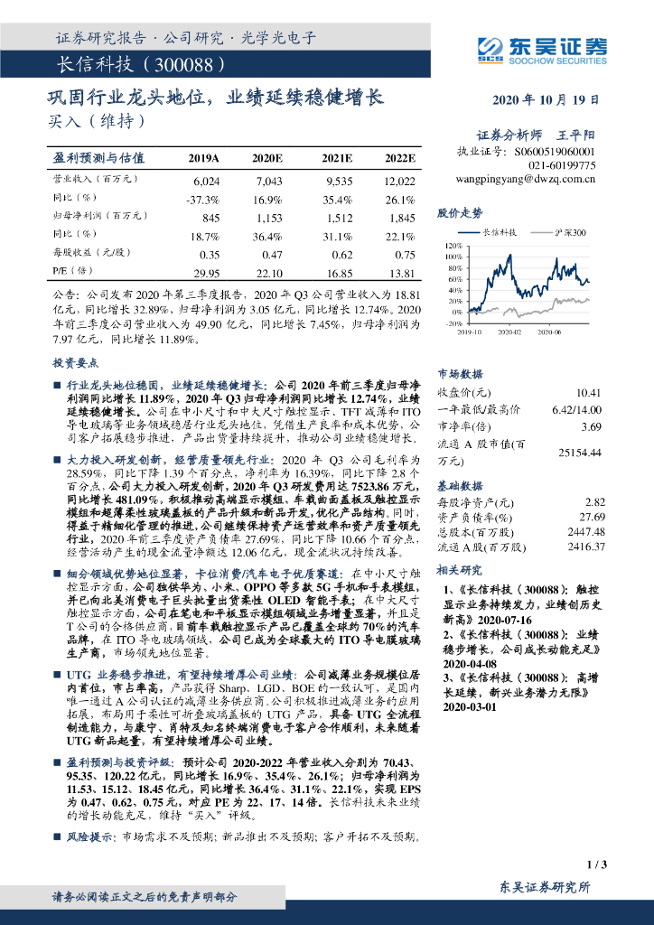 东吴证券:长信科技(300088)-巩固行业龙头地位,业绩延续稳健增长.pdf