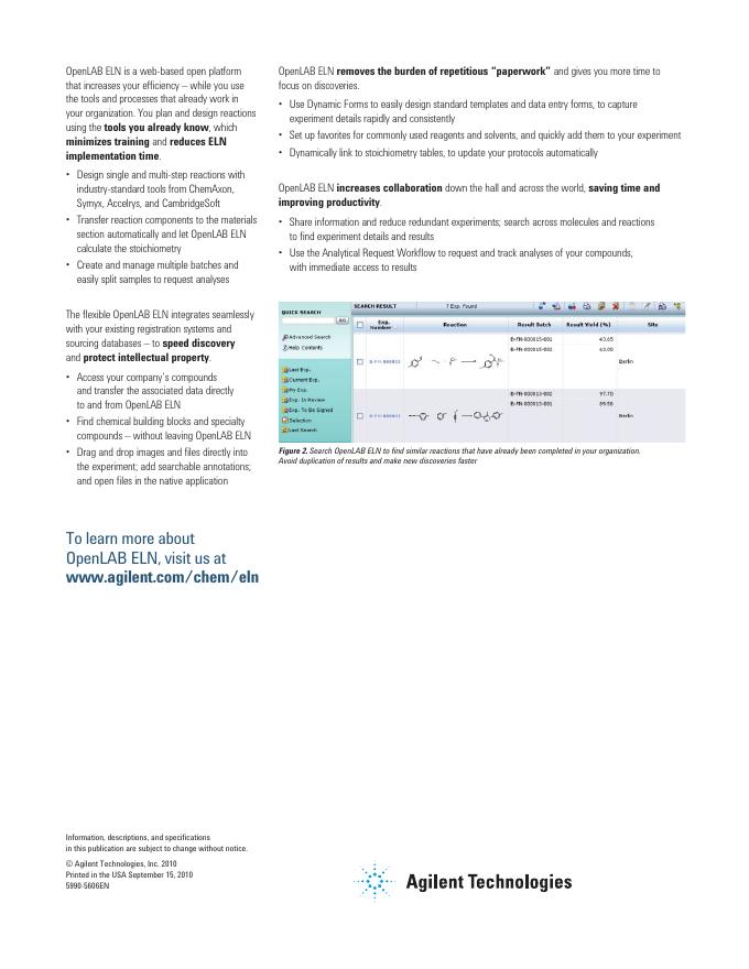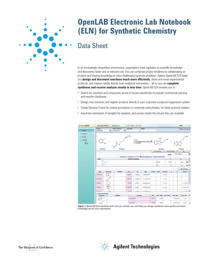 Agilent OpenLAB Electronic Lab Notebook (ELN) for Synthetic Chemistry data sheet 数据手册.pdf